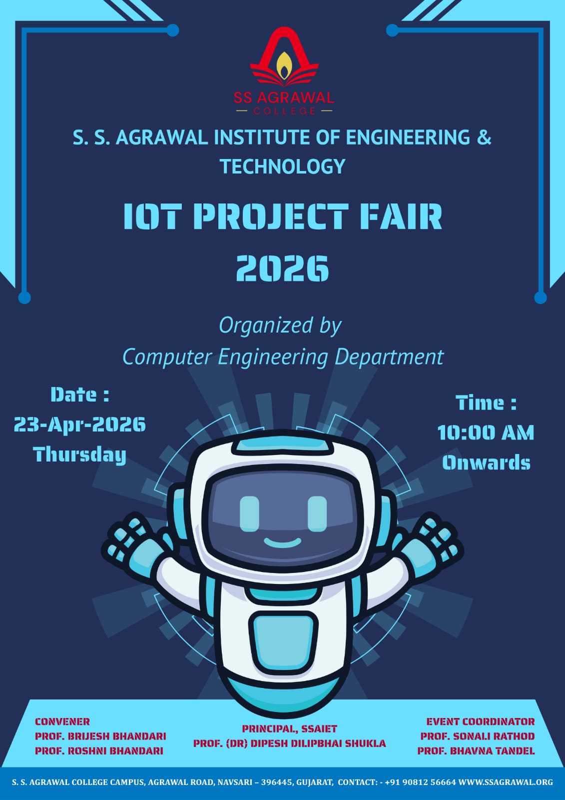 The Computer Engineering Department of S. S. Agrawal Institute of Engineering and Technology, Navsari is organizing an IoT Project Fair on 23rd April 2026 (Thursday) starting from 10:00 AM onwards.
