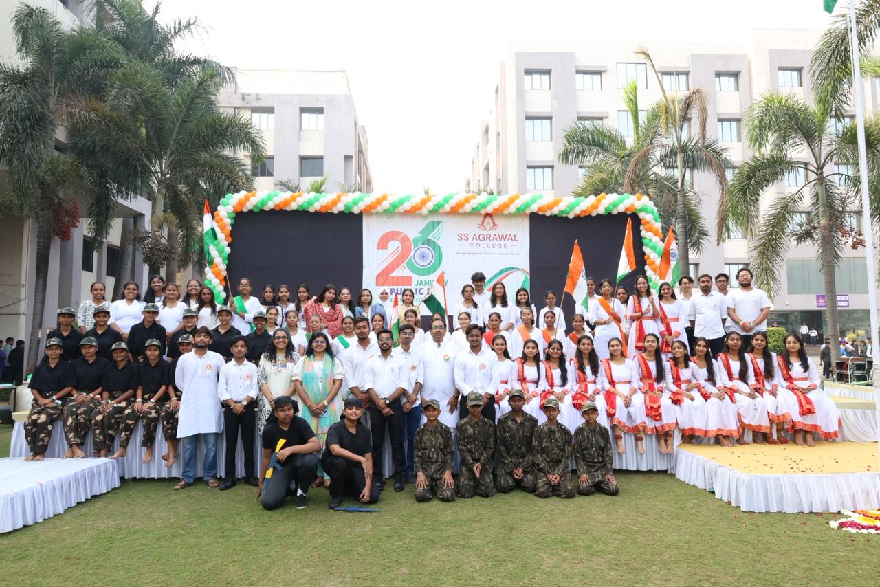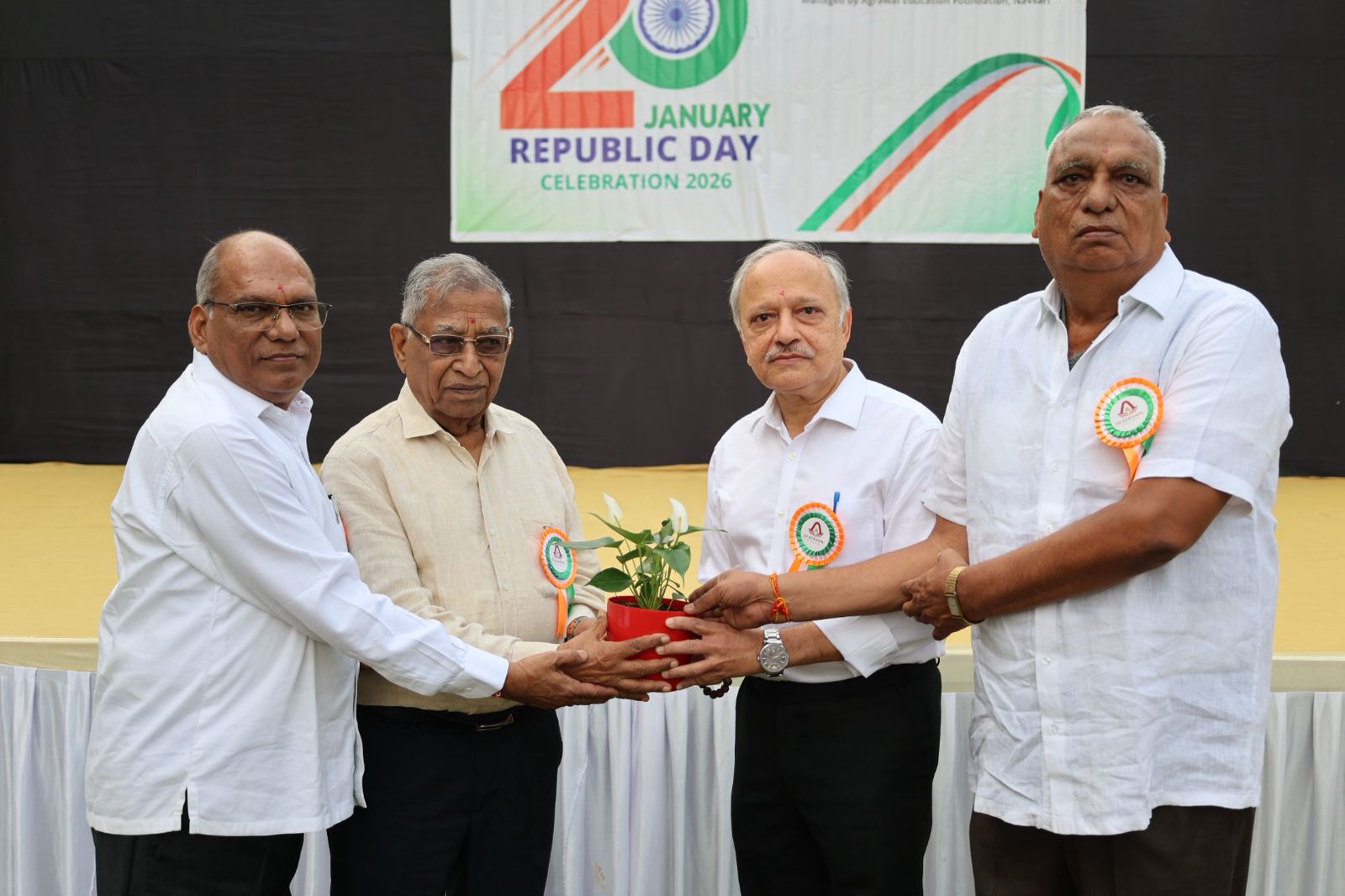 S. S. Agrawal College in Navsari held its Republic Day Celebration on January 26, 2026, marking India’s 76th Republic Day with patriotic events. Dr. Samir Parikh, a local ophthalmologist, was a chief guest, given his prominence in Navsari.