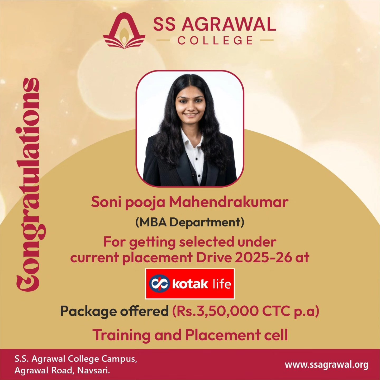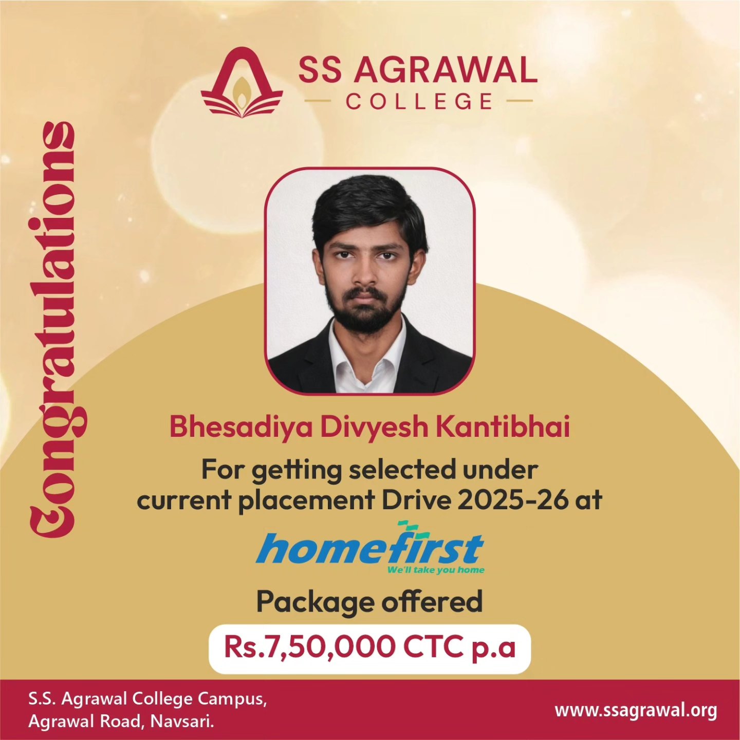S. S. Agrawal College, organized a Pool Campus Placement Drive by DMart on 16th Jan,2026, providing students with a valuable opportunity to step into the professional world with one of India’s most trusted retail brands
