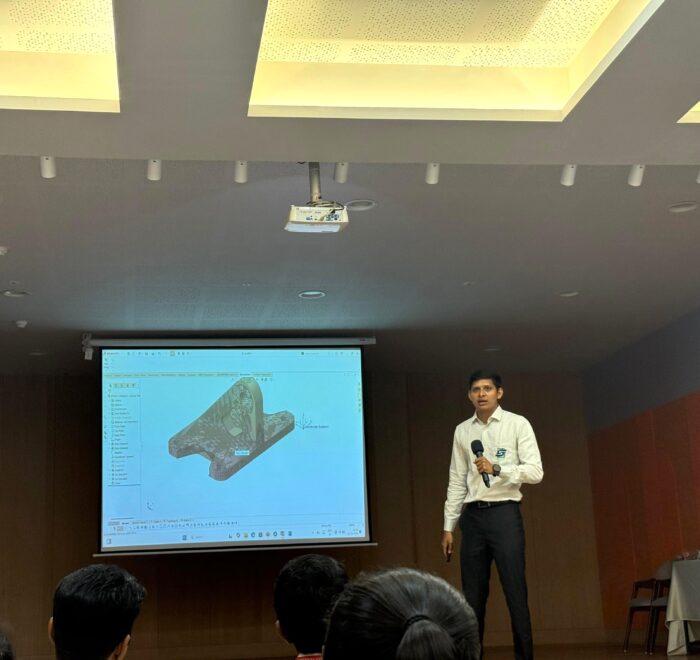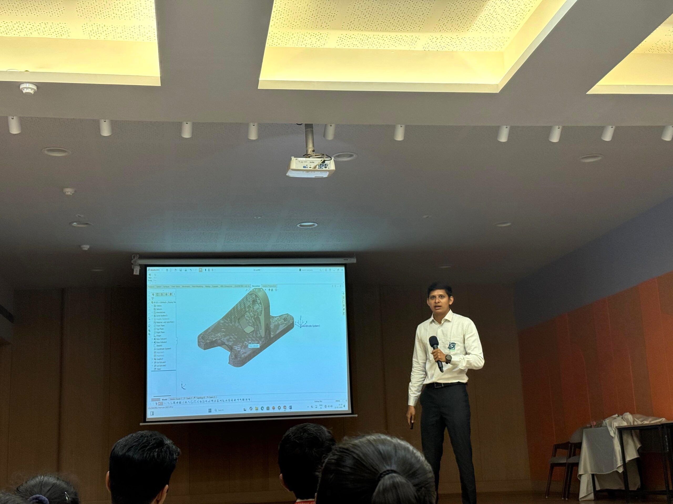 In first session of workshop speaker has explained how we can prevent Product failure by Simulation which helps to find design mistakes early, so expensive rework and material waste are reduced. It allows testing different conditions (load, temperature, speed, stress etc.) without building physical prototypes. In second session the speaker has given live demonstration of drawing, which include all the basic command used in AUTOCAD & SOLIDWORKS software. We are very thankful to the speaker Mr. Kamal Tandel and our HOD Mr. Kalpan M. Desai for arranging such a useful hands-on workshop for the students.